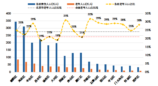 随着北京市老龄化进程的不断加快,老年人口数量的持续增长已成为社会发展的重大挑战。北京市60岁及以上常住老年人口已超过五百万,并且这一数值将在未来几年继续上升。北京市2025年政府工作报告提出:“继续加强社会保障。积极应对人口老龄化,完善养老服务体系”,这表明了市政府对于应对人口老龄化问题、提升养老服务质量和资源分配公平性的高度重视。