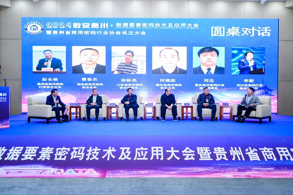 在圆桌对话环节,贵州省商用密码行业协会会长彭长根主持了对话交流,山东省商用密码协会理事长徐秋亮、湖北省商用密码协会会长何德彪、海南省商用密码协会会长曹春杰、重庆商用商用密码行业协会理事长邓迅、四川省密码行业协会秘书长李新等协会负责人,围绕“商用密码行业协会建设及运营经验分享”进行了探讨,各协会负责人不吝分享各自的经验和建议,为贵州省商用密码行业协会后续发展建言献策。